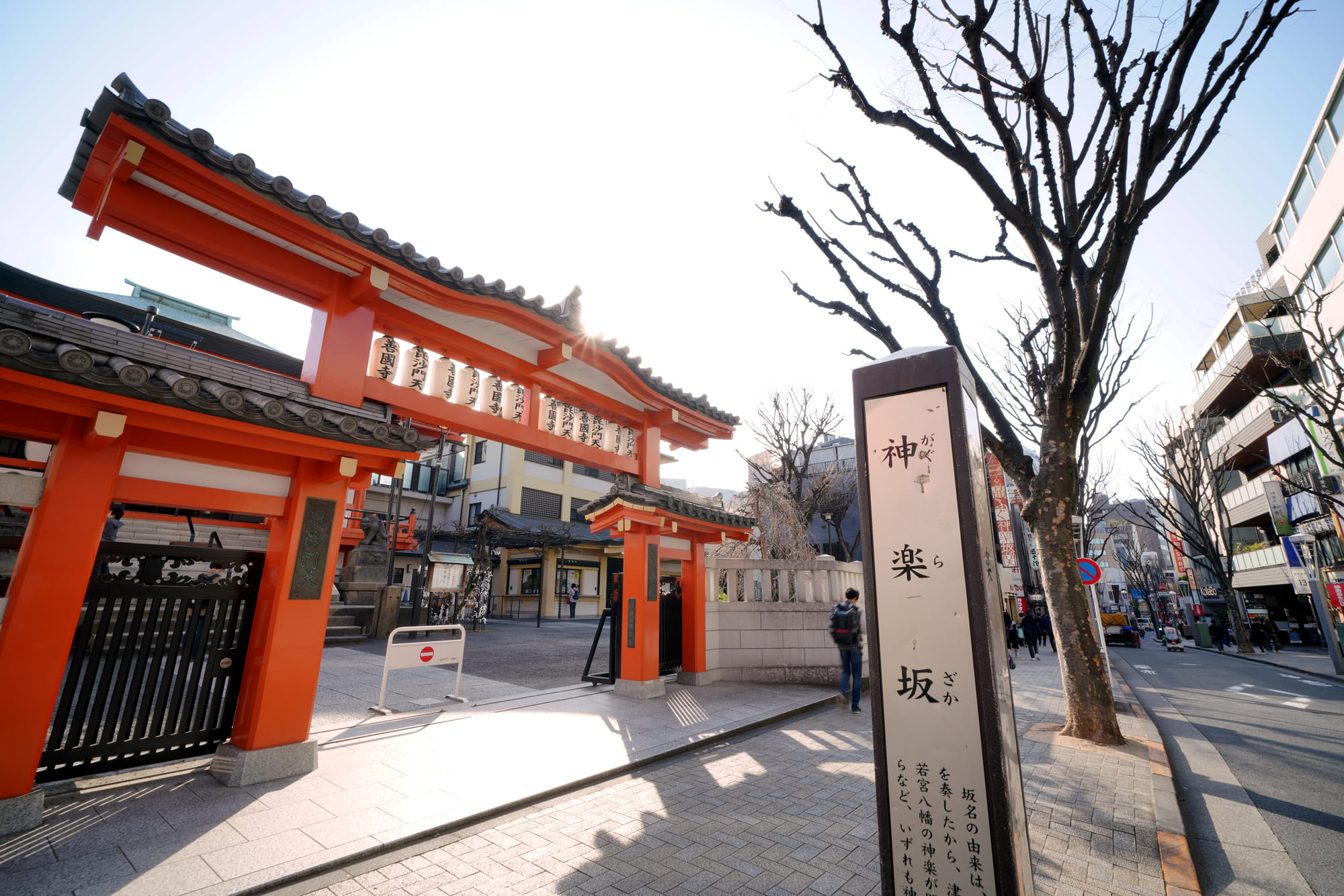 神楽坂のシンボル的存在の寺院で、商売繁盛や開運のご利益で知られています。参道や境内は気軽に立ち寄りやすく、街歩きの途中に訪れる人も多いスポットです。